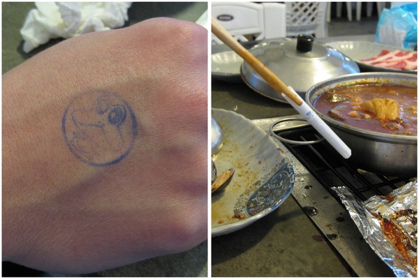 露天餐廳的好處:吃到一半發現幾乎桌桌在抽煙,這對平時抽煙相當低調的我來說實在是一大福音,當下就決定回車上拿煙,店員在我手上蓋了一個章表示可憑此章進出,有點像遊樂園的作法…不過白痴的是我忘了帶打火機,又不好意思跟鄰桌借,只好用爐火點煙…叔叔有練過…