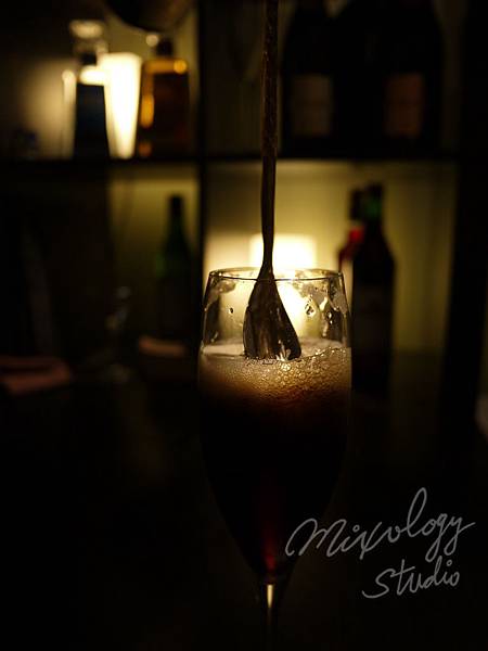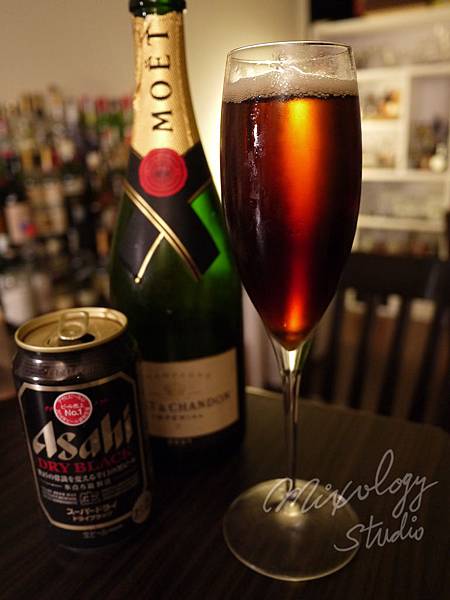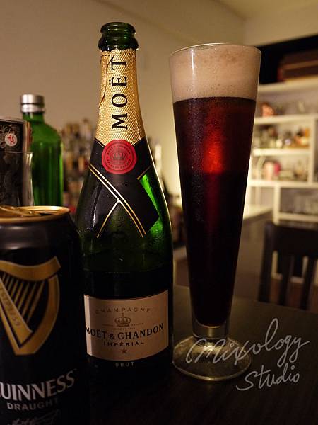 同時還開外掛放神技,秘術。手很穩之術!調製了這一杯黑色天鵝絨(Black Velvet),