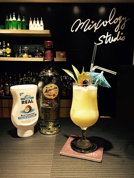取得傳說中的材料馬上回到吧檯,進行一個調製的動作。結果讓我下了好大一跳跳,沒有椰漿的生味,卻保有椰子香氣及濃稠度,不像糖漿死甜化學感,又能提供有層次的口感,和鳳梨汁搭配可比紅毛土去超著沙;可比胭脂馬拄到關老爺(老師音樂請下~~~